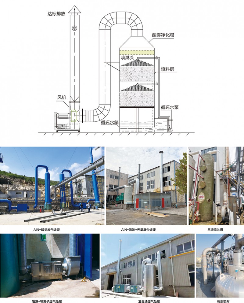廢氣凈化噴淋塔主要的運(yùn)作方式是廢氣由風(fēng)管引入凈化塔,經(jīng)過填料層,廢氣與氫氧化鈉吸收液進(jìn)行氣液兩相充分接觸吸收中和反應(yīng),廢氣經(jīng)過凈化后,再經(jīng)除霧板脫水除霧后由風(fēng)機(jī)排入大氣。吸收液在塔底經(jīng)水泵增壓后在塔頂噴淋而下,回流至塔底循環(huán)使用。凈化后的廢氣達(dá)到地方排放標(biāo)準(zhǔn)的排放要求,低于國家排放標(biāo)準(zhǔn)。